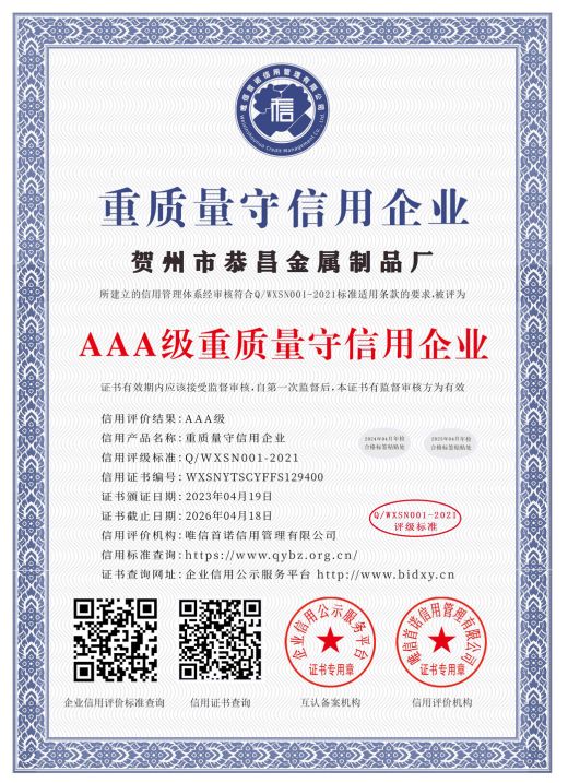 賀州市恭昌制品廠成立于2000年7月,占地面積約9000平左右,是一家集設計、生產、研發于一體的綜合型企業。